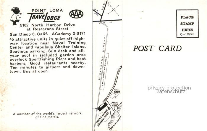73130722 San Diego California Point Loma Travel Lodge Motel postalisch nicht gelaufen Erhaltung siehe scans [FriedD77] KatCode: 14140050000000