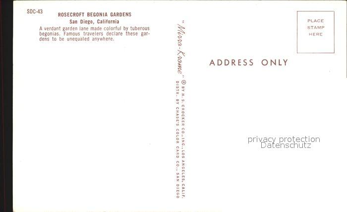 72482916 San Diego California Rosecroft Begonia Gardens postalisch nicht gelaufen Erhaltung siehe scans KatCode: 14140050000000