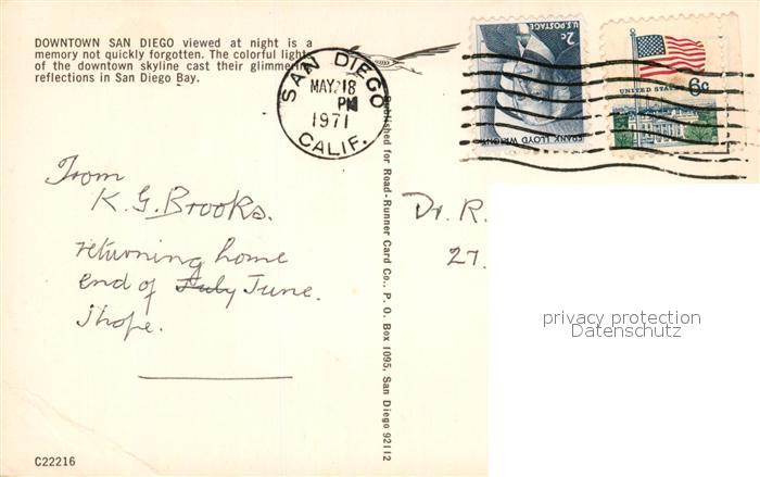 73130329 old postcard San Diego California San Diego Bay postalisch gelaufen Erhaltung siehe scans [NatalD47] KatCode: 14140050000000