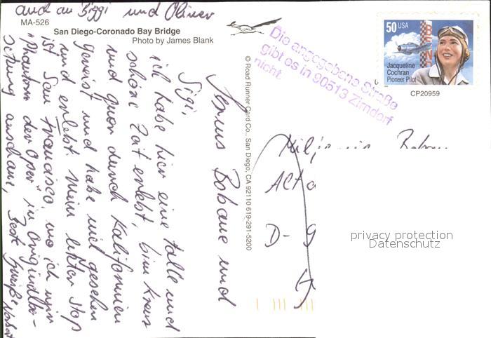 72052707 old postcard San Diego California San Diego Coronado Bay Bridge aerial view postalisch gelaufen Erhaltung siehe scans KatCode: 14140050000000