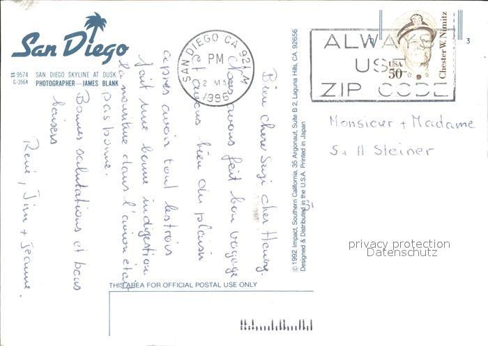 72564587 old postcard San Diego California Skyline Hafen postalisch gelaufen Erhaltung siehe scans [AndreD76] KatCode: 14140050000000