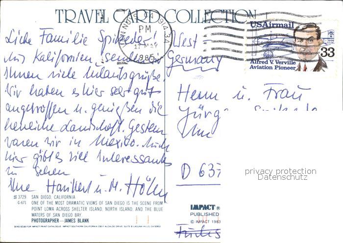 72499979 old postcard San Diego California Skyline postalisch gelaufen Erhaltung siehe scans KatCode: 14140050000000