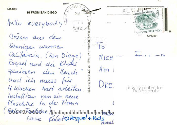 72648990 old postcard San Diego California Teilansichten postalisch gelaufen Erhaltung siehe scans [WerneD78] KatCode: 14140050000000