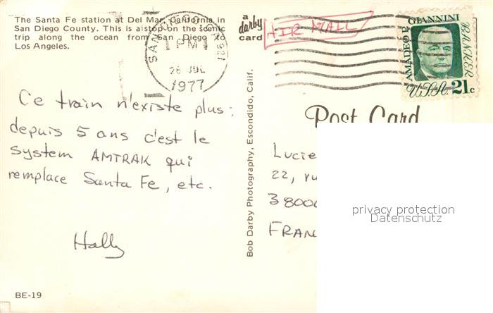72944241 old postcard San Diego California The Santa Fe station at Del Mar postalisch gelaufen Erhaltung siehe scans [WerneD78] KatCode: 14140050000000
