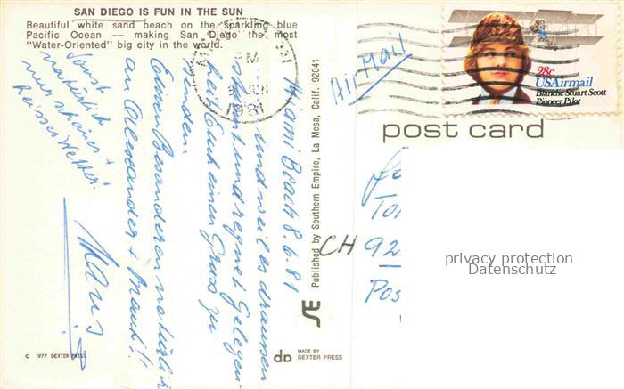 74118034 old postcard SAN DIEGO California USA Fliegeraufnahme postalisch gelaufen Erhaltung siehe scans [WerneD78] KatCode: 14140050000000