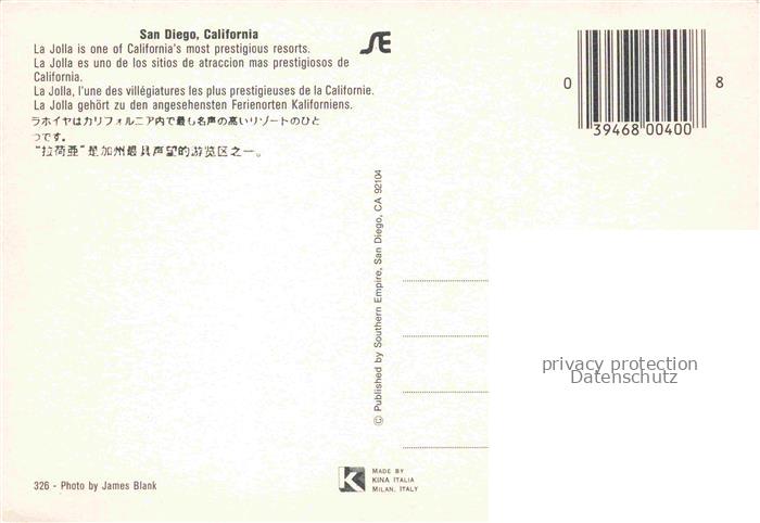 74086068 SAN DIEGO California USA La Jolla postalisch nicht gelaufen Erhaltung siehe scans [WerneD78] KatCode: 14140050000000