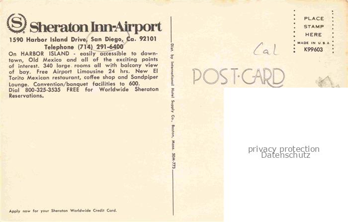 74094078 SAN DIEGO California USA Sheraton Inn Airport Panorama postalisch nicht gelaufen Erhaltung siehe scans [WerneD78] KatCode: 14140050000000