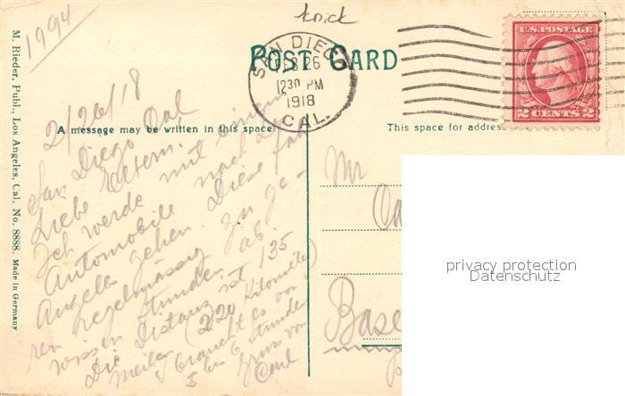 13318421 old postcard San Diego California warners hot Springs postalisch gelaufen Erhaltung siehe scans [Darjalle] KatCode: 14140050000000
