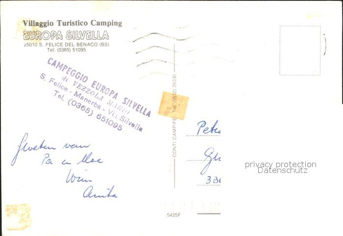 old postcard San Felice del Benaco Villagio Turistico Camping Europa Silvella Swimmingpool Strandpartie Spielplatz postalisch gelaufen Erhaltung siehe scans