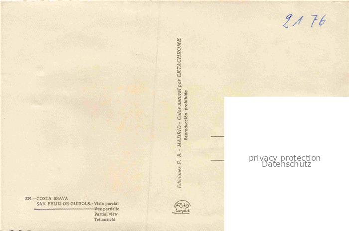 74156319 San Feliu de Guisols San Feliu Deguixols Costa Brava ES Costa-Brava Kueste Felsen Meer Strand Stadtansicht Berge Boot postalisch nicht gelaufen Erhaltung siehe scans [Karloger] KatCode: 11510