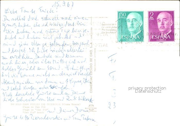 old postcard San Feliu de Guixols Playa de San Pol postalisch gelaufen Erhaltung siehe scans
