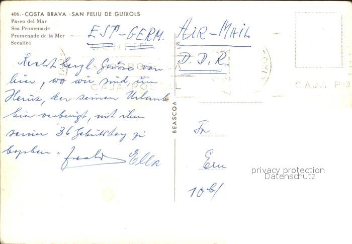 old postcard San Feliu de Guixols Strandpromenade postalisch gelaufen Erhaltung siehe scans