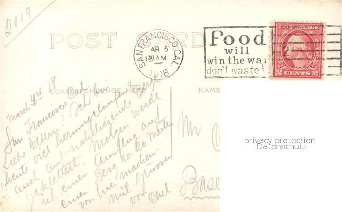 33373629 old postcard San Francisco California postalisch gelaufen Erhaltung siehe scans [LiesaD40] KatCode: 14140050000000