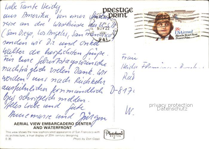 72459937 old postcard San Francisco California Aerial View Embarcadero Center and Waterfront postalisch gelaufen Erhaltung siehe scans KatCode: 14140050000000