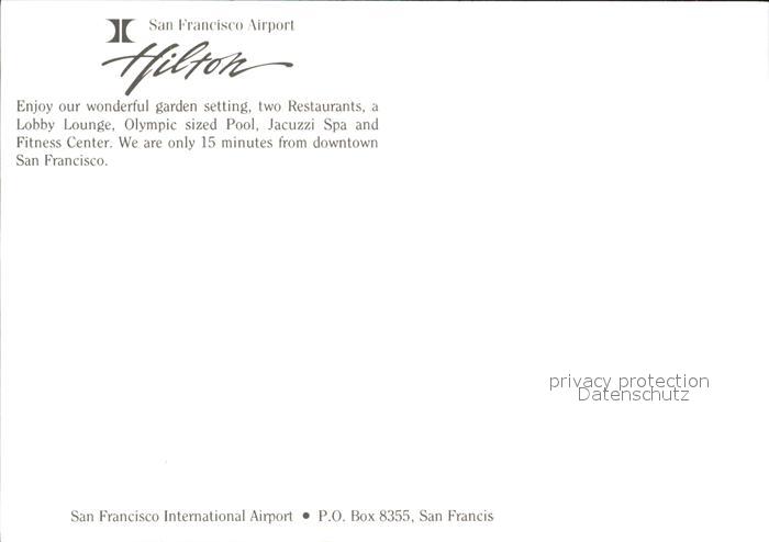 72582857 San Francisco California Airport Hilton Hotel postalisch nicht gelaufen Erhaltung siehe scans [LiesaD40] KatCode: 14140050000000