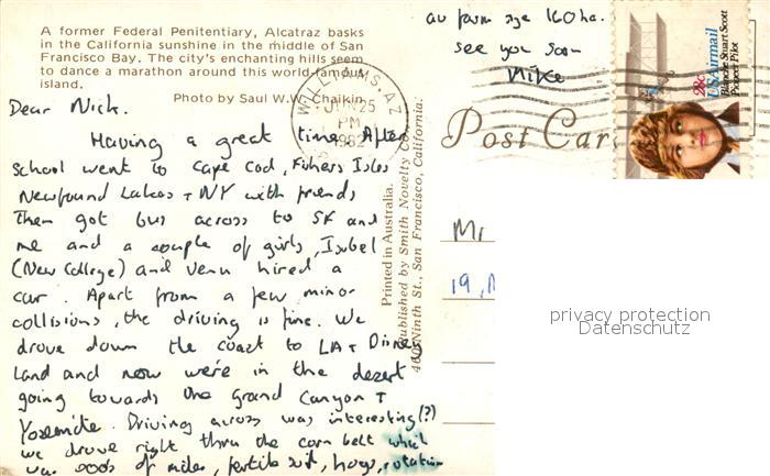 73131748 old postcard San Francisco California Alcatraz Island Prison San Francisco Bay aerial view postalisch gelaufen Erhaltung siehe scans [FriedD77] KatCode: 14140050000000