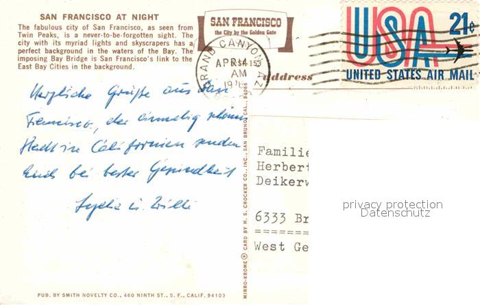 72840992 old postcard San Francisco California Bay Bridge postalisch gelaufen Erhaltung siehe scans [NatalD47] KatCode: 14140050000000