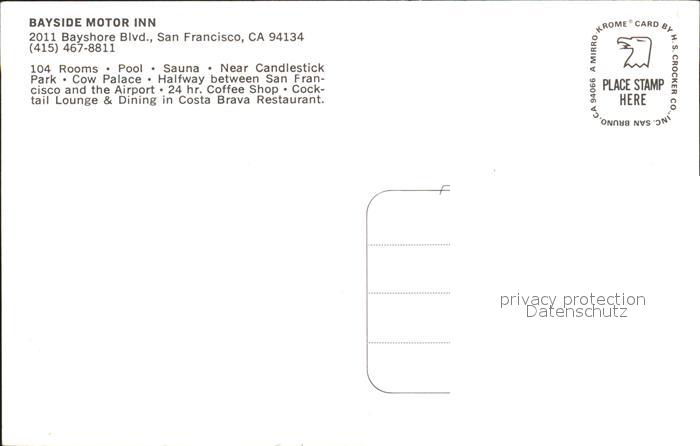 72272855 San Francisco California Bayside Motor Inn postalisch nicht gelaufen Erhaltung siehe scans KatCode: 14140050000000