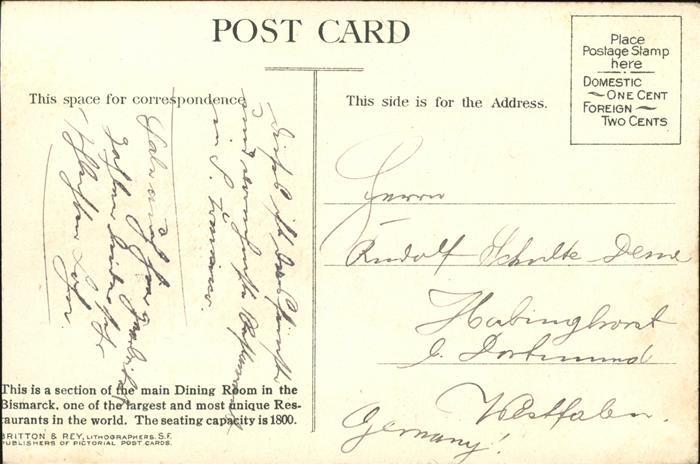 11322714 San Francisco California Bismarck Cafe postalisch nicht gelaufen KatCode: 14140050000000
