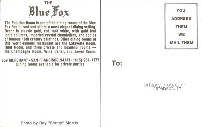 72092664 San Francisco California Blue Fox Palatina Room postalisch nicht gelaufen Erhaltung siehe scans KatCode: 14140050000000
