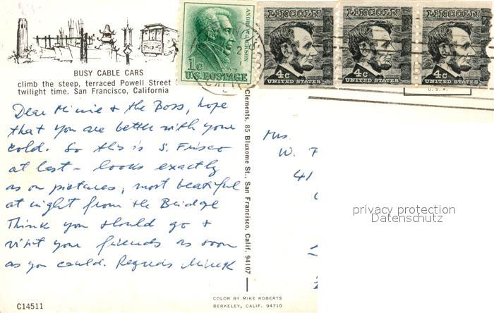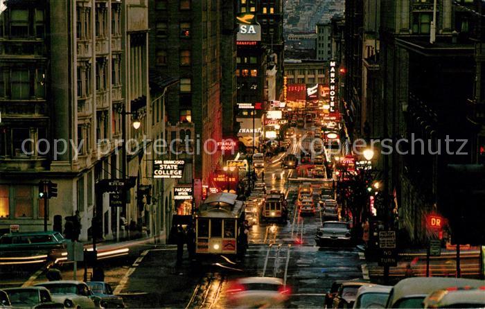 73061542 old postcard San Francisco California Busy Cable Cars Powell Street twilight time postalisch gelaufen Erhaltung siehe scans [WerneD78] KatCode: 14140050000000
