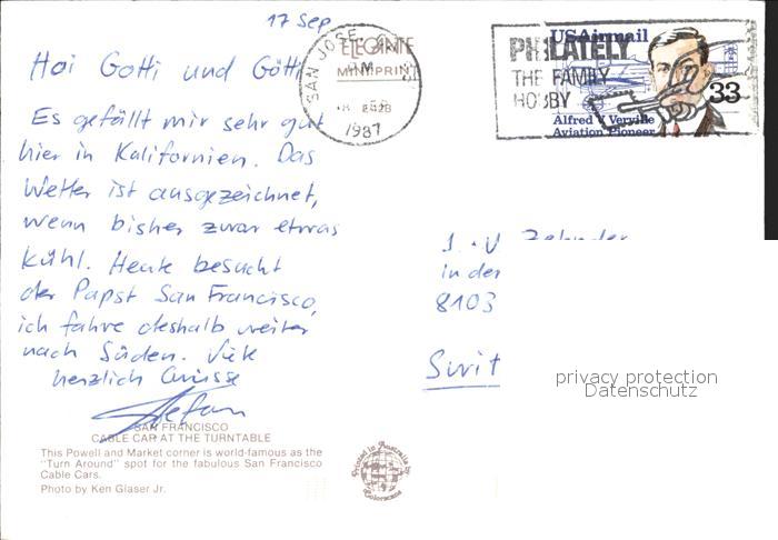 72232142 old postcard San Francisco California Cable Cap at the Turntable postalisch gelaufen Erhaltung siehe scans KatCode: 14140050000000