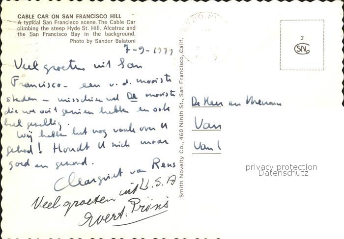 72579791 old postcard San Francisco California Cable Car Alcatrasz Islan postalisch gelaufen Erhaltung siehe scans [LiesaD40] KatCode: 14140050000000