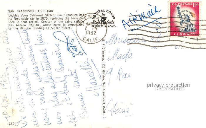 73123507 old postcard San Francisco California Cable Car California Street postalisch gelaufen Erhaltung siehe scans [FriedD77] KatCode: 14140050000000