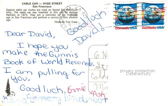 73061441 old postcard San Francisco California Cable Car Hyde Street postalisch gelaufen Erhaltung siehe scans [WerneD78] KatCode: 14140050000000