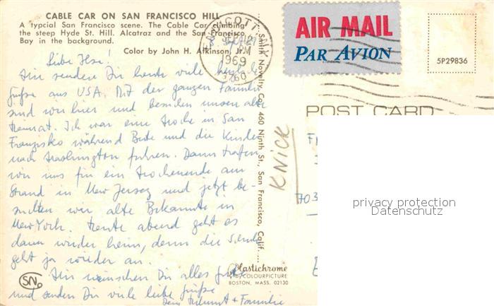 72637666 old postcard San Francisco California Cable Car on San Francisco Hill Alcatraz Bay postalisch gelaufen Erhaltung siehe scans [FriedD77] KatCode: 14140050000000