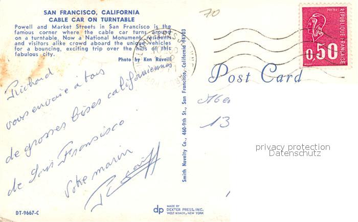 73057206 old postcard San Francisco California Cable Car on Turntable postalisch gelaufen Erhaltung siehe scans [WerneD78] KatCode: 14140050000000