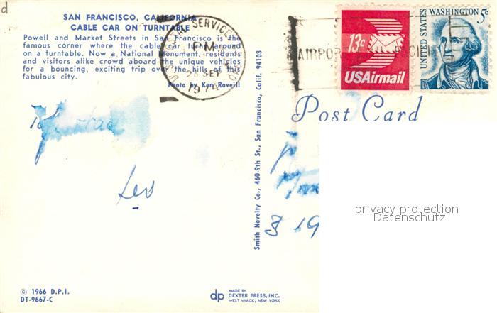 73131817 old postcard San Francisco California Cable Car on turntable postalisch gelaufen Erhaltung siehe scans [FriedD77] KatCode: 14140050000000