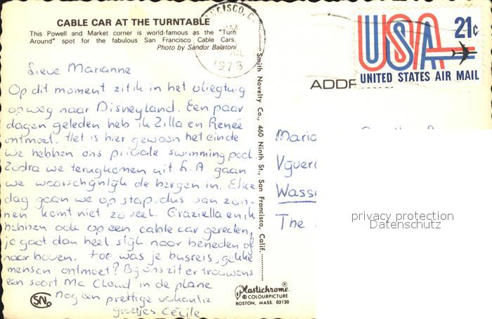 72598189 old postcard San Francisco California Cable Car turnable Powell und Market postalisch gelaufen Erhaltung siehe scans [LiesaD40] KatCode: 14140050000000