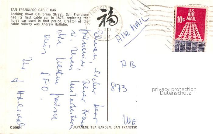 73127739 old postcard San Francisco California Cable Car postalisch gelaufen Erhaltung siehe scans [KathaD81] KatCode: 14140050000000