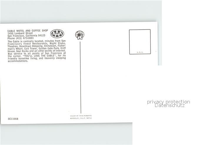 72132582 San Francisco California Cable Motel and Coffee Shop postalisch nicht gelaufen Erhaltung siehe scans KatCode: 14140050000000
