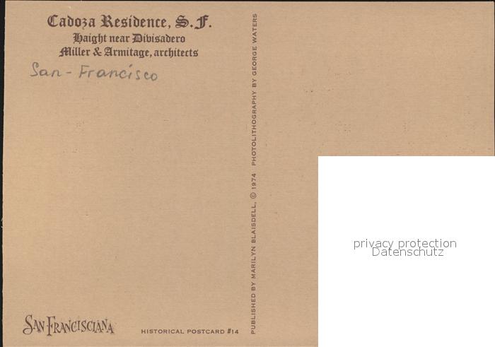 72557744 San Francisco California Cadoza Resedence Haight near Divisadero postalisch nicht gelaufen Erhaltung siehe scans [KathaD79] KatCode: 14140050000000