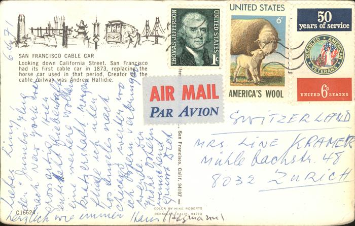 11491311 old postcard San Francisco California California Street Cable Car Creator Andrew Hallidie postalisch gelaufen Erhaltung siehe scans KatCode: 14140050000000