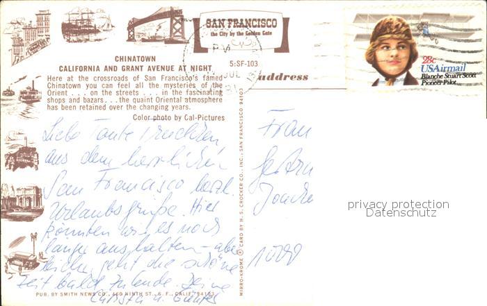 72228576 old postcard San Francisco California Chinatown and Grant Avenue at night postalisch gelaufen Erhaltung siehe scans KatCode: 14140050000000