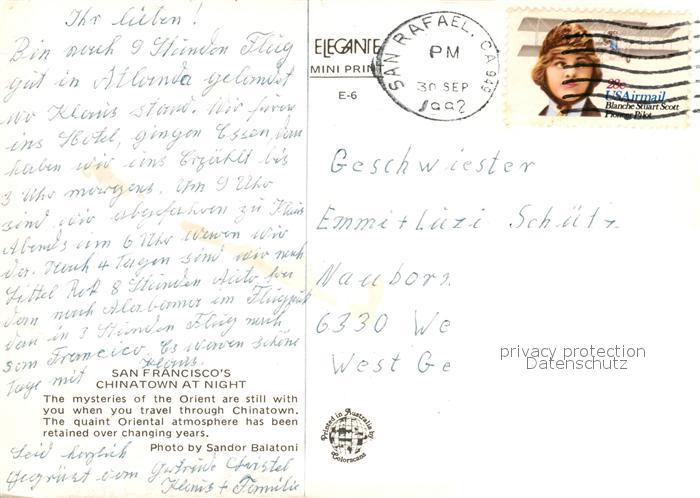 73248434 old postcard San Francisco California Chinatown Nachtaufnahme postalisch gelaufen Erhaltung siehe scans [KathaD81] KatCode: 14140050000000