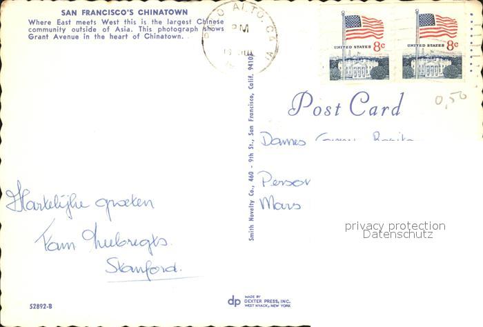 72451053 old postcard San Francisco California Chinatown Strassenbahn postalisch gelaufen Erhaltung siehe scans KatCode: 14140050000000