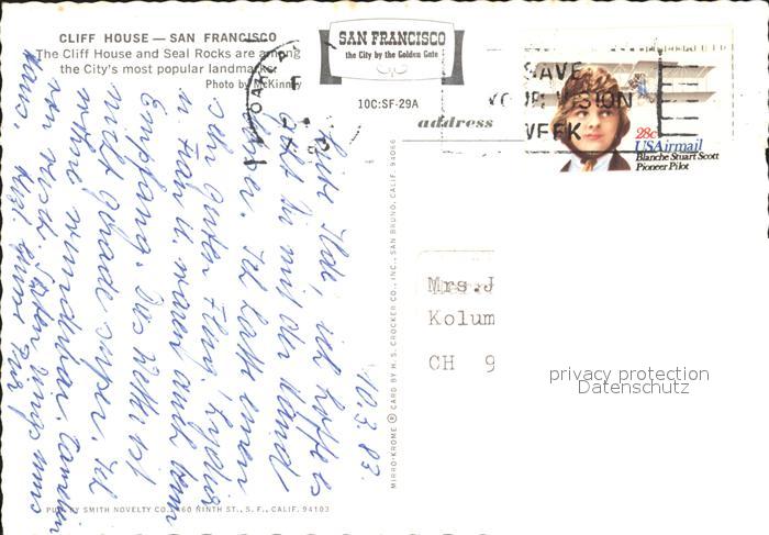 72381878 old postcard San Francisco California Cliff House postalisch gelaufen Erhaltung siehe scans KatCode: 14140050000000
