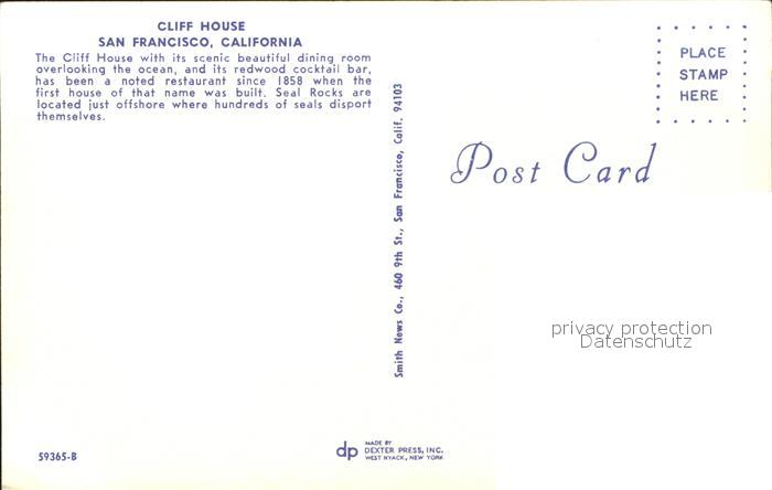 71926573 San Francisco California Cliff House postalisch nicht gelaufen Erhaltung siehe scans KatCode: 14140050000000