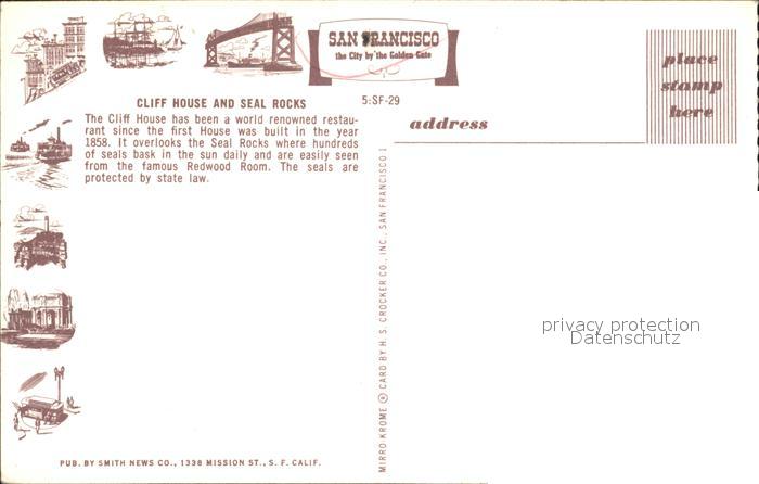 72048945 San Francisco California Cliff House Seal Rocks postalisch nicht gelaufen Erhaltung siehe scans KatCode: 14140050000000
