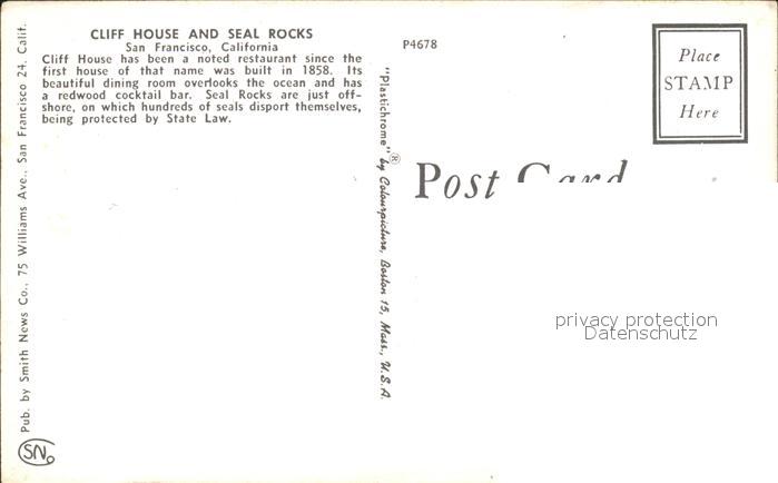71967586 San Francisco California Cliff House Seal Rocks postalisch nicht gelaufen KatCode: 14140050000000