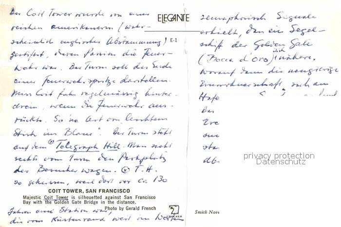 72650534 San Francisco California Coit Tower postalisch nicht gelaufen Erhaltung siehe scans [LiesaD40] KatCode: 14140050000000
