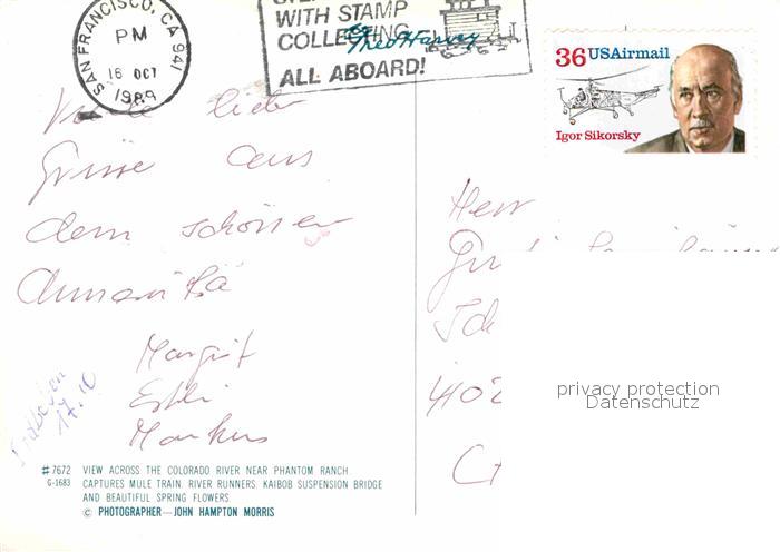 72646201 old postcard San Francisco California Colorado River near Phantom Ranch postalisch gelaufen Erhaltung siehe scans [WerneD78] KatCode: 14140050000000