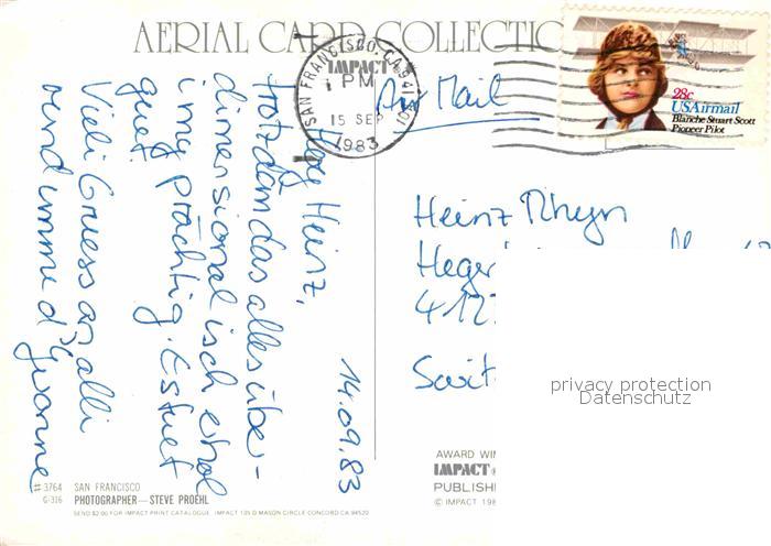 72707808 old postcard San Francisco California Downtown aerial view postalisch gelaufen Erhaltung siehe scans [FriedD77] KatCode: 14140050000000