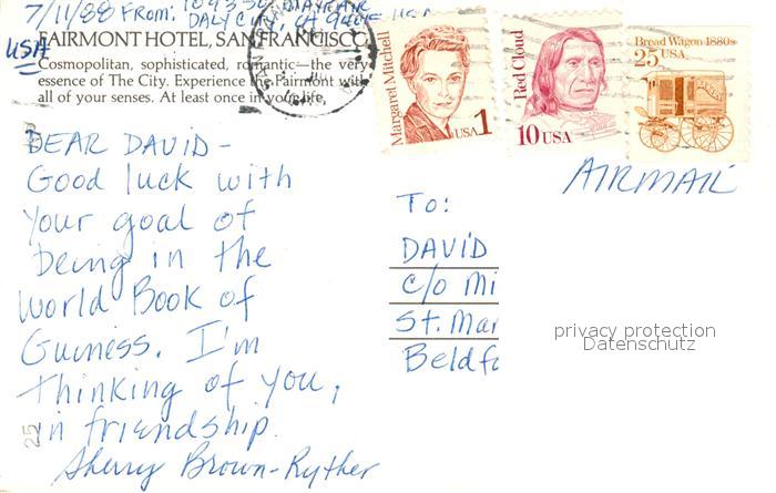 73126219 old postcard San Francisco California Fairmont Hotel postalisch gelaufen Erhaltung siehe scans [KathaD81] KatCode: 14140050000000