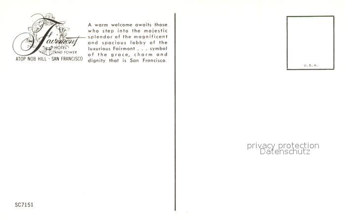 73701273 San Francisco California Fairmont Hotel Lobby postalisch nicht gelaufen Erhaltung siehe scans [FriedD77] KatCode: 14140050000000