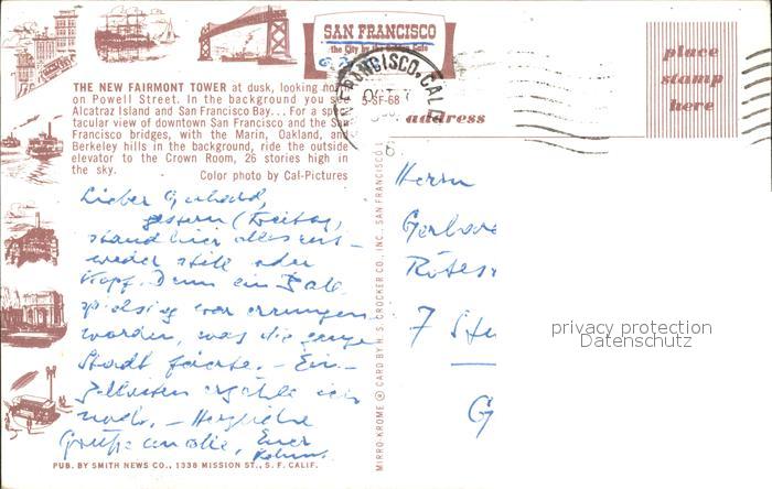 71957650 old postcard San Francisco California Fairmont Tower postalisch gelaufen Erhaltung siehe scans KatCode: 14140050000000
